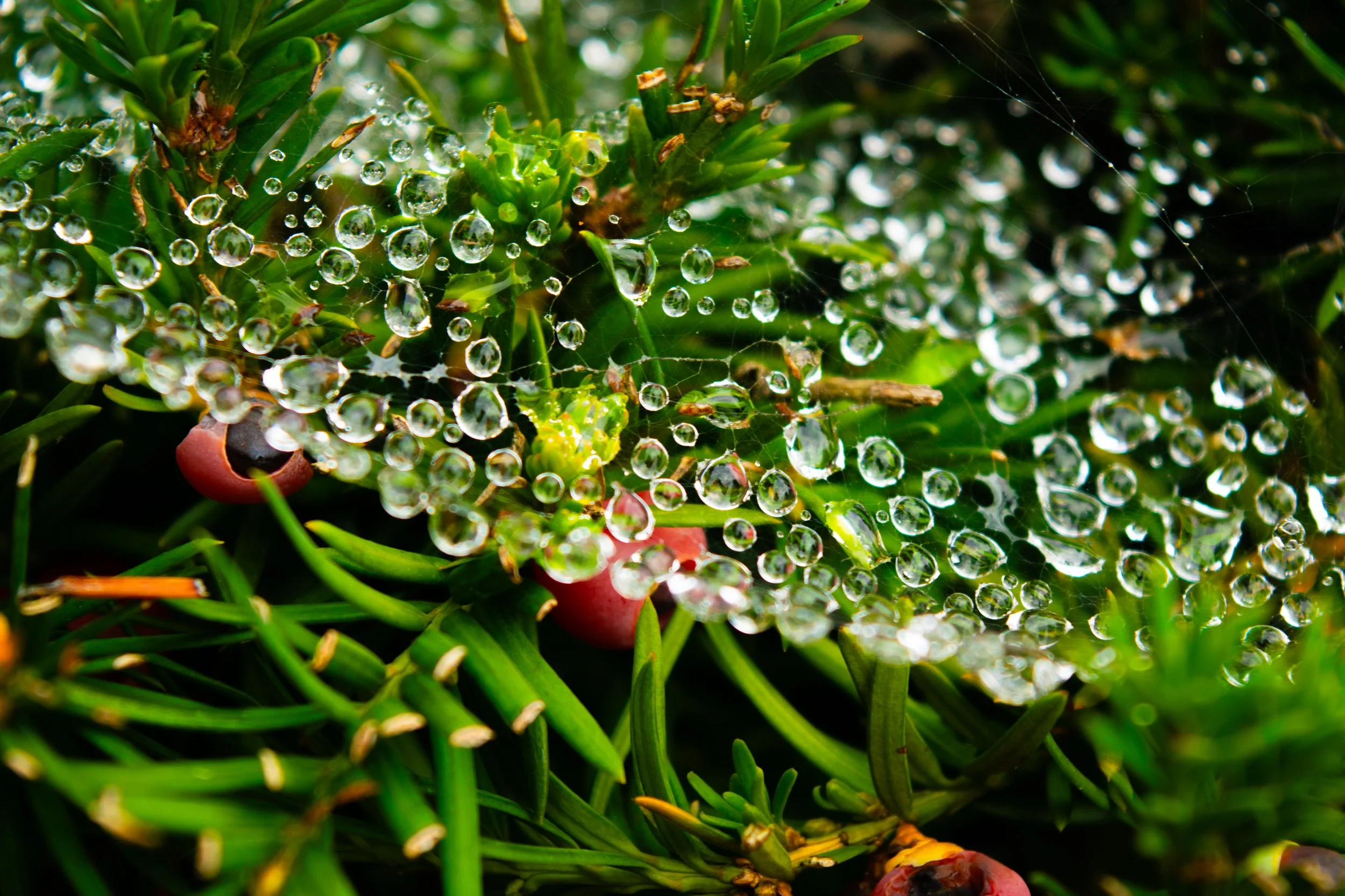 Water droplets on a spiderweb
